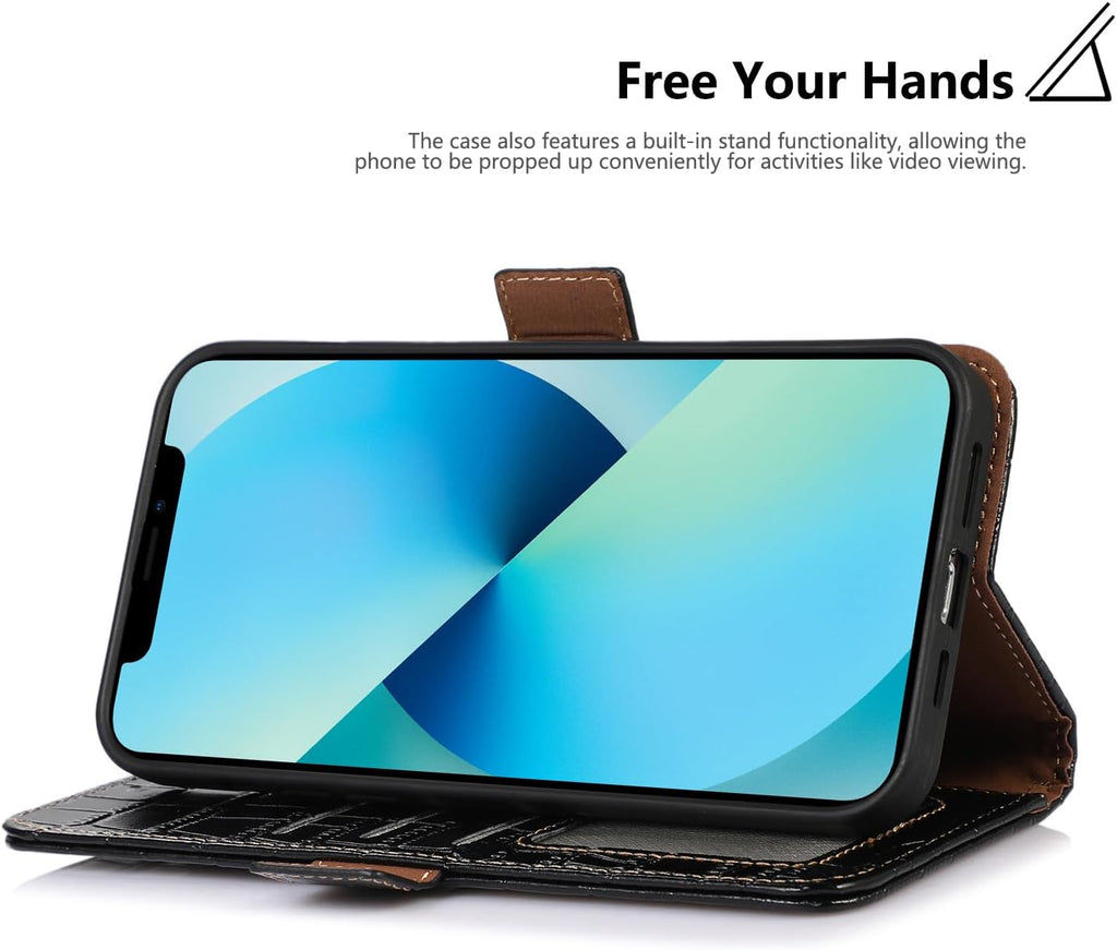 This iPhone 17 Pro wallet case is made of Premium Genuine Leather and is designed to protect your phone from scratches, drops, and other damage also RFID Blocking.