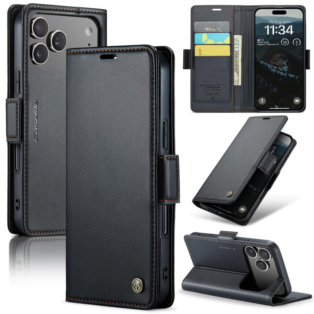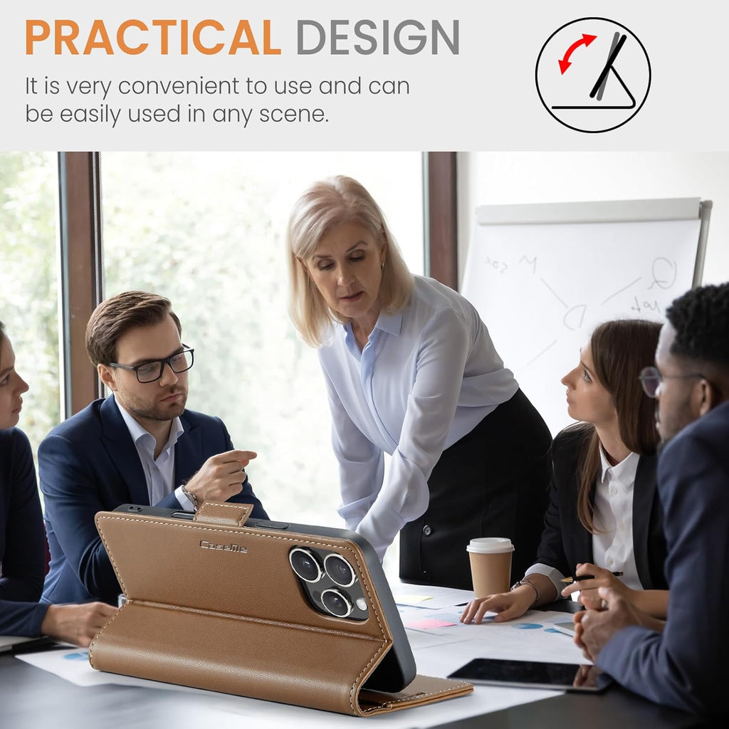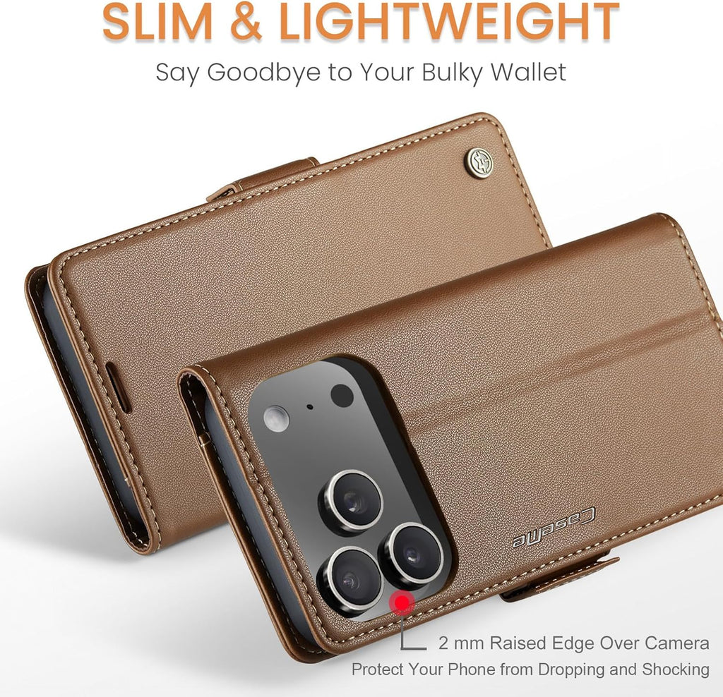 This iPhone 17 Pro Max wallet case is made of premium PU leather and is designed to protect your phone from scratches, drops, and other damage also RFID Blocking.